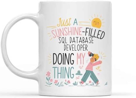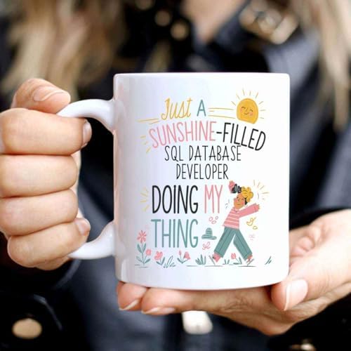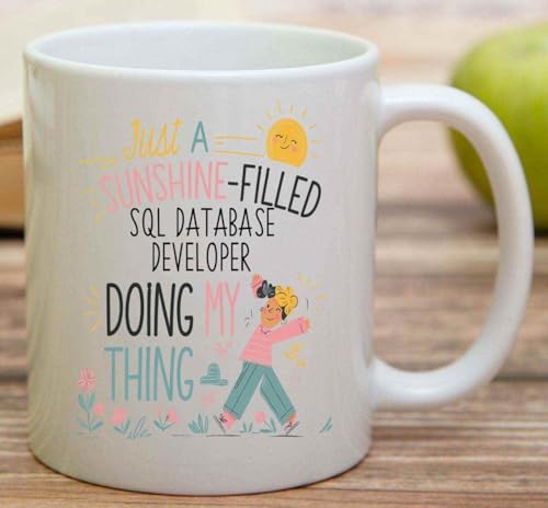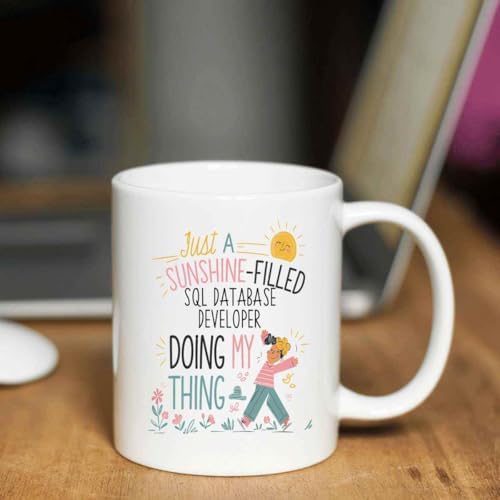 Humorous Gift Idea Funny Gift for Sql Database Developer, a Sunshine-field Sql Database Developer Doing my Thing, Present for Coworkers, Friends 11 Oz White Ceramic Coffee Mug