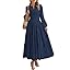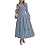 BTFBM Fall Dresses for Women 2025 Casual Long Sleeve V Neck Elastic Waist Lightweight Maxi Wedding Guest Dress Pockets