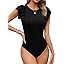 Missufe Women's Summer Ruffle Flutter Sleeve Ribbed Casual Bodysuit Tops