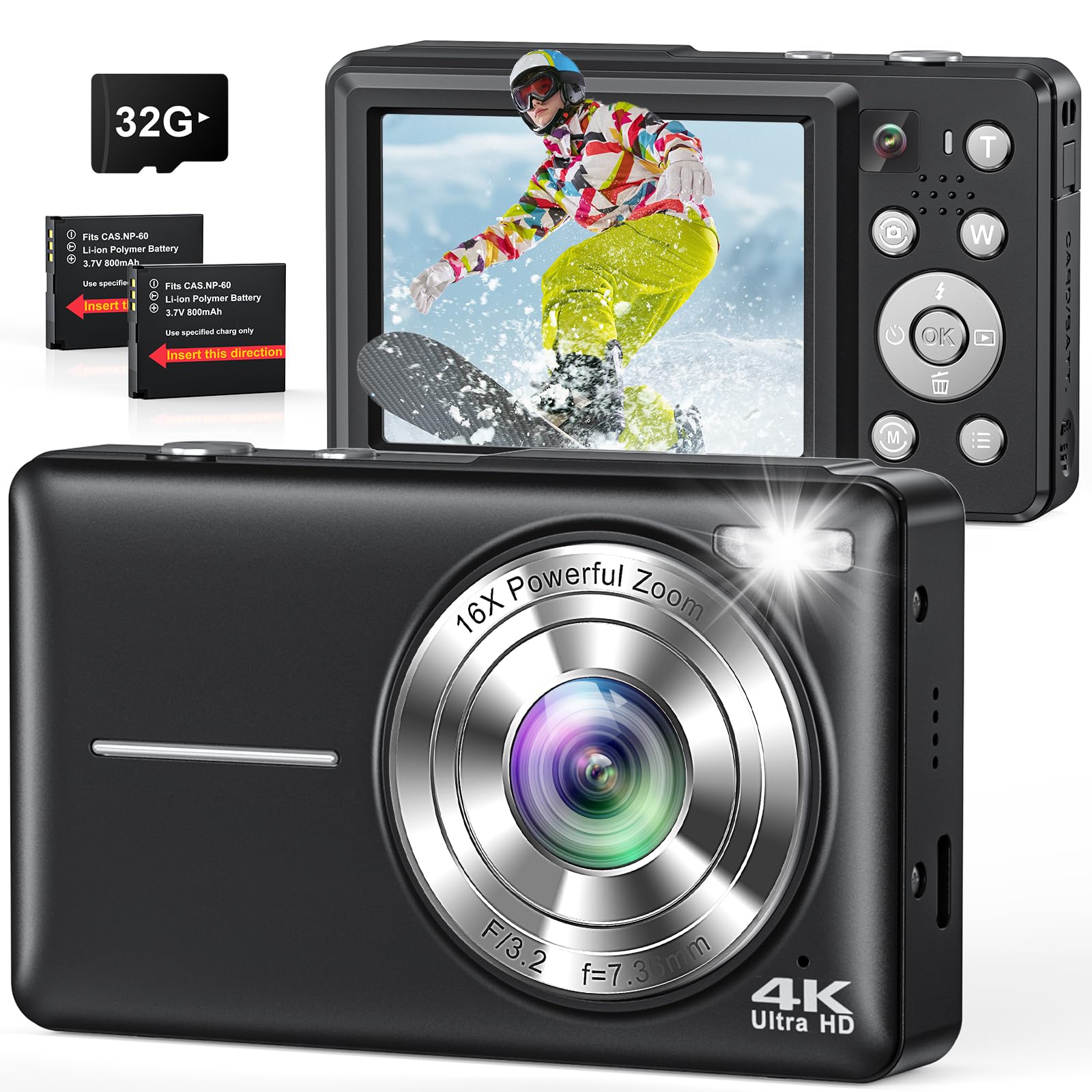 - ⚡【Complete Vlog Kit Ready】 Includes 32GB TF card (stores 6000+ photos), 2 rechargeable batteries (about 2h total runtime), and anti-drop strap. Start creating immediately out of the box.