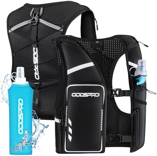 - 【Multifunctional Humanized Design】Enhances your running experience with ODDSPRO running vest! The set comes with a 500ml soft flask, TPU material, and can be lightly pressed to release water, and is collapsible after use. While biking, the water bottle can be tied without sloshing with the secure elastic cord. Stay hydrated easily with it. Adjust the elastic rope on the back, you can tie the running essentials tightly while running. At night, the high reflectors will keep you safe all the way.