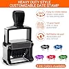 Customizable Heavy-Duty Date Stamp with Personalized Custom Text LogoOur customizable date stamp offers an efficient solution for businesses and individuals who need to mark dates on documents, invoices, and forms quickly and consistently. Featuring a 12-year adjustable date range (2024-2035), you can easily change the date using a smooth-turning dial, making it perfect for long-term use. Add custom text or logos around the date, allowing you to tailor each impression to suit your needs.Multi-Purpose & Versatile UseThis self-inking date stamp is perfect for a wide variety of applications, including document marking, batch labeling, pricing, serial numbers, and more. Ideal for office paperwork, invoicing, business documentation, and even personal use. Whether you're in a busy office, warehouse, or retail environment, this versatile stamp helps you keep operations running smoothly.Durable Heavy-Duty ConstructionBuilt to withstand regular use, this heavy-duty date stamp features a brushed stainless steel frame for superior durability and long-lasting performance. Whether you're stamping high volumes of documents or marking packages, this stamp is built to handle the demands of your business.Clean & Easy OperationThe wheels of this dater rotate smoothly, allowing you to easily adjust the date at any point. A protective guard surrounds the wheels, preventing ink from getting on your fingers when changing the date. This feature ensures a clean and hassle-free stamping process every time.12 Years of Future-Proof DatesThe bands of this dater are designed to stamp dates continuously from 2024 to 2035, ensuring you don’t need to update the date range for years. This future-proofing makes it an excellent long-term investment for your business or personal use, providing consistent performance year after year.