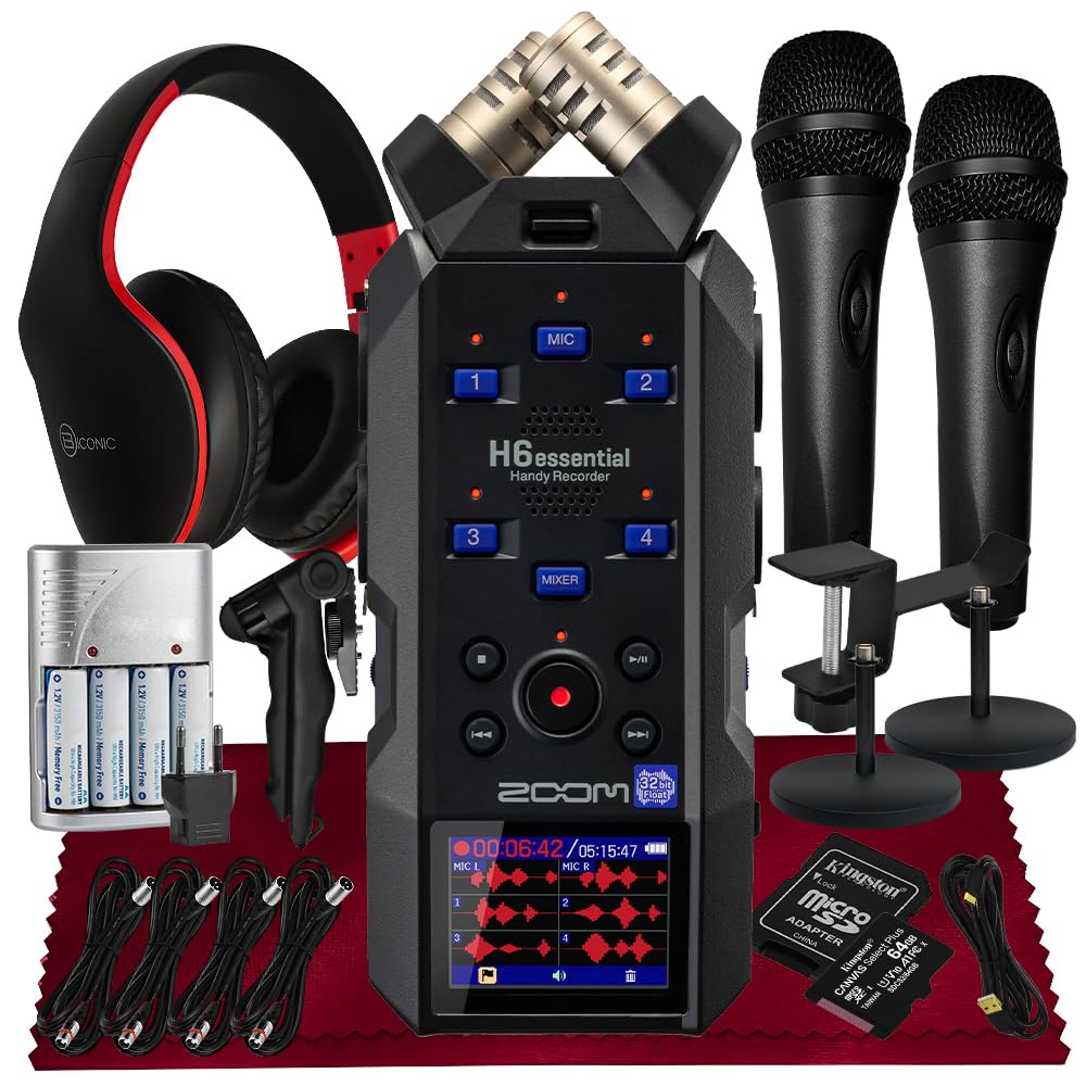 - Comprehensive Set – This Zoom H5 Studio handy recorder includes SonicSound accessories - 1 USB 2.0 to C Cable (3ft=1m), 1 Microfiber Cleaning Cloth, 1 Kingston 64GB MicroSDXC Memory Card, 1 Handgrip Tabletop Tripod, 1 Professional Headphone w Built-in Microphone, 2 XLR Cables M to F 10 feet, 1 Headphone Hanger, and 4AA Rechargeable Batteries with Charger.