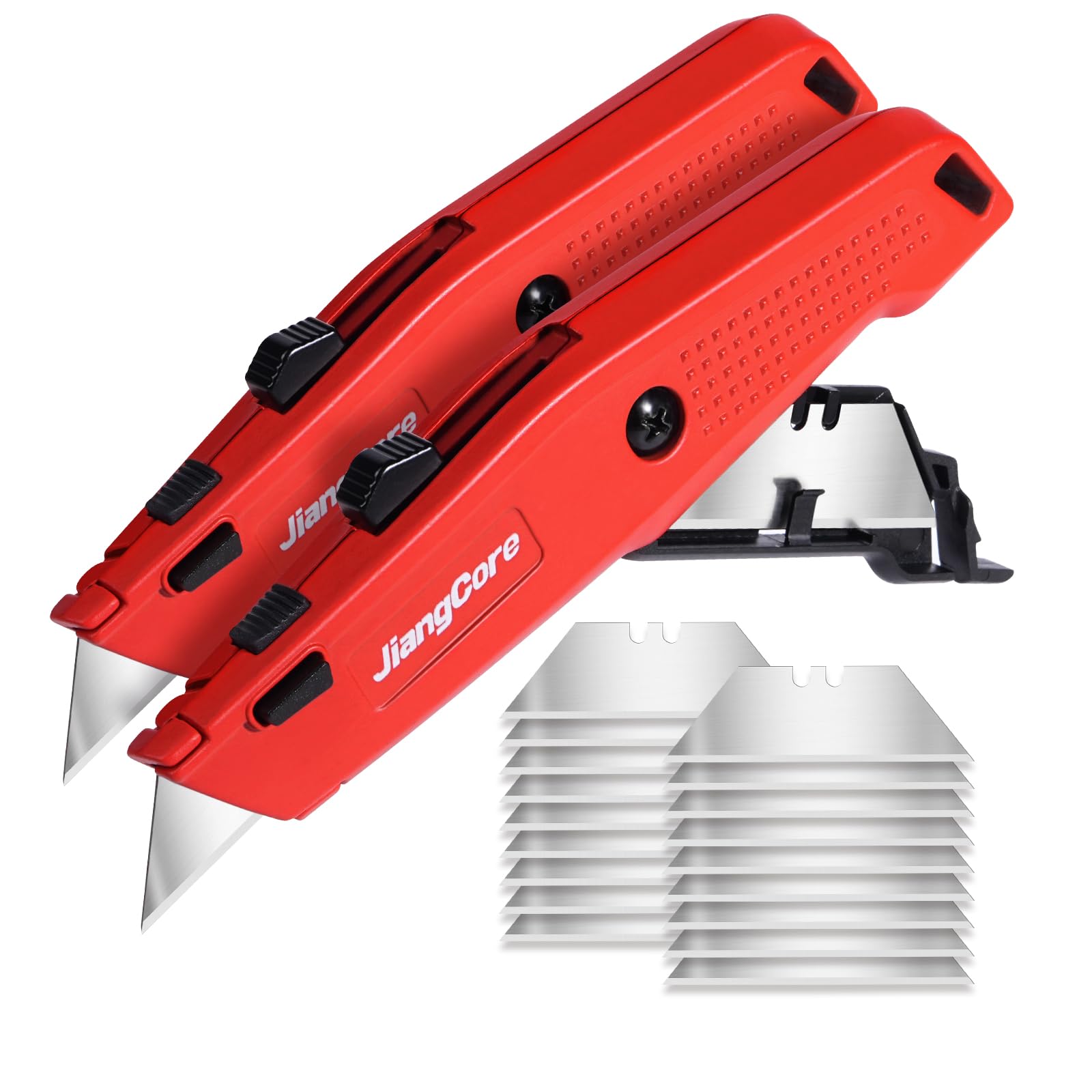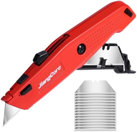 - 【Industrial-Grade Precision】 Sharp SK5 steel blades make effortless cuts through cardboard, carpet, vinyl, and craft materials. Retractable design ensures safety when stored
