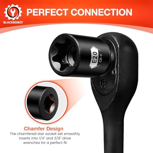 - STRONG AND DURABLE:Made from high-grade chrome vanadium steel that is drop-forged and heat-treated, the star socket set offers superior durability and the ability to handle higher torque. Their corrosion-resistant black phosphate coating ensures long service life