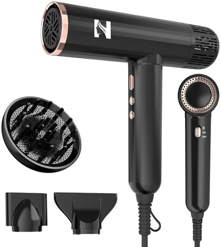 Nicebay Ionic Hair Dryer with diffuser for Curly Hair,1600W &110000RPM High-Speed Brushless Motor for Fast Drying,Professiona Blow Dryer for Women,Low Noise,Lightweight,Lock Function,Travel Home Salon