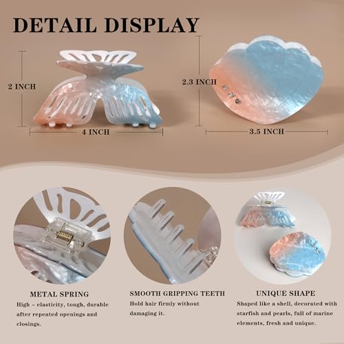 - Unique Design: These hair claw clips boast an adorable ocean-themed design ,design inspired by marine life, including vibrant starfish and seashell shapes.Combining vintage pearl elements to create a fun and youthful look