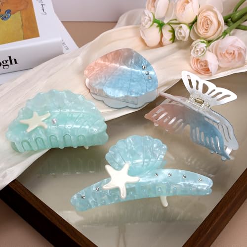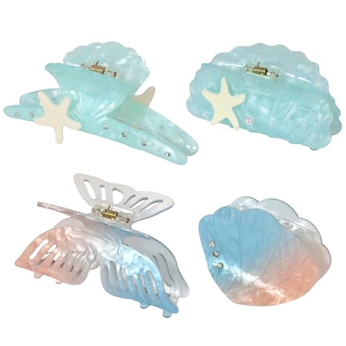 4 Pcs Sea Animal Hair Claw Clips Starfish Hair Clip Beach Sea Star Hair Pins Shell Pearl Hair Claw Clip Mermaid Hair Clips Accessories for Women and Girls