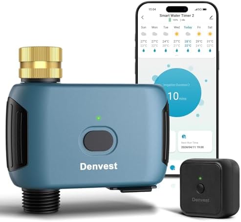 WiFi Water Timer with Brass Inlet, 1 Zone Smart Sprinkler Timer for Garden Hose Faucet, Hose Timers with WiFi Hub, Up to 20 Watering Plans, APP & Voice Control, Compatible with Alexa