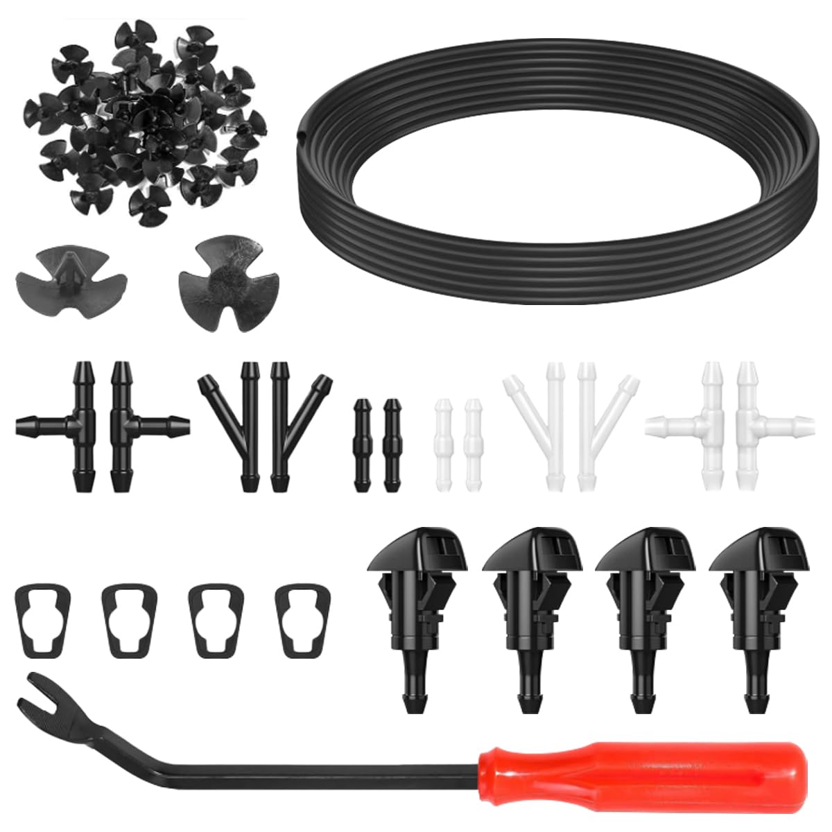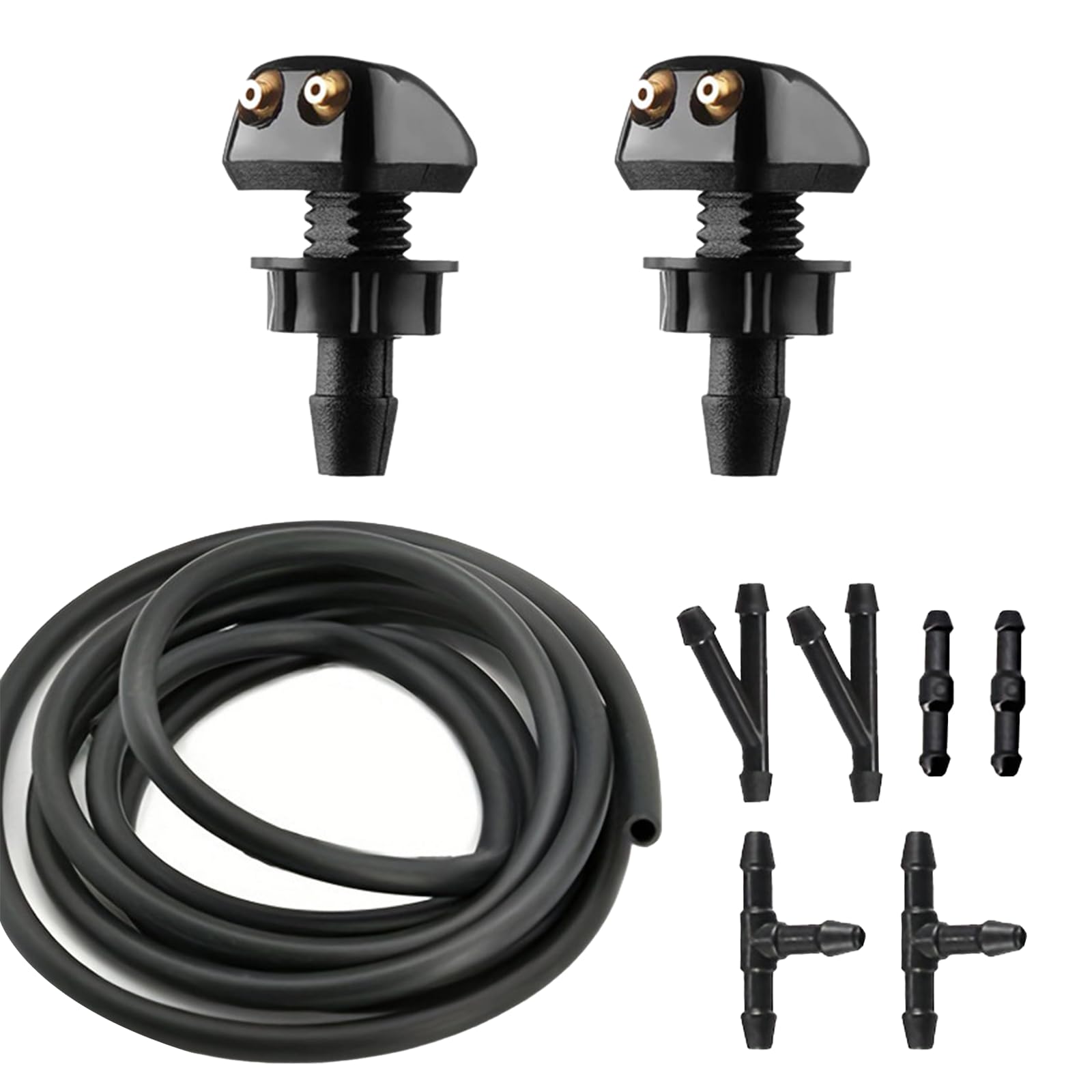 Car Front Windshield Washer Nozzles, Double-Hole Auto Wiper Water Sprayers with Hose and Connectors, Adjustable Nozzle Washer Kit for Most Vehicles (9PCS)