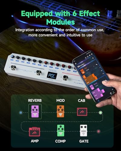 FLAMMA FB200 Bass Multi-Effects Pedal Intelligent Processor with 10 Bass-specific AMP models 10 CAB Sim 9 IR Slots 40 Drum Rhythm 40 Presets 5 Mod 5 Reverb Tuner APP Control Headphone Output