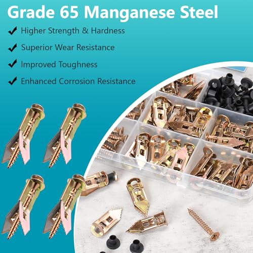 - Quality Assurance, Perfect Organization and Storage: All wall anchors for drywall and nylon washers are neatly organized in a tidy storage plastic box with compartments, making them easy to store and access. Each wall anchors kit includes 50 pcs of 0.47 × 1.18-inch manganese steel expansion screws, 50 nylon washers, and detailed instructions for use.