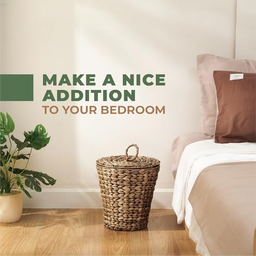 - NATURAL MATERIAL ELEGANCE Handwoven with 100% natural hyacinth, this wicker garbage basket adds a touch of rustic charm to any room. Enjoy the beauty and durability of an eco-friendly product that complements various home decor styles effortlessly.