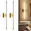 Wall Sconces Set of Two Battery Operated, Wireless USB Rechargeable Wall Lights with Remote, 8000mAh Dimmable LED 3 Color Dimmable Living Room for Bedroom,Hallway,Picture Lamp(30in Gold)