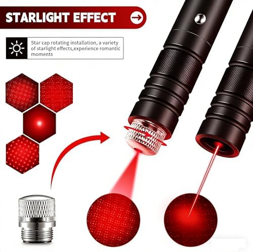- High Power Laser Pointer: Remove the silver star cap by rotating, experience the long range laser beam. You can see the Red laser beam trajectory is clearly whether it is day or night, This high power laser pointer can reach 2000 meters at night.