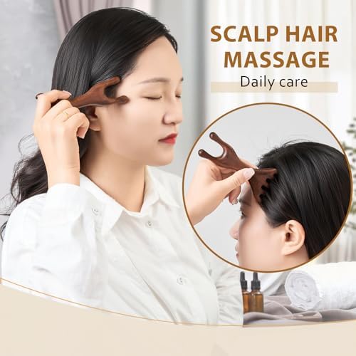 - Double-Ended Wood Scalp Massager, Sandalwood Gua Sha Comb, Head Scalp Scratcher Massage Tool for Deep Relaxation & Stress Reductio Gifts