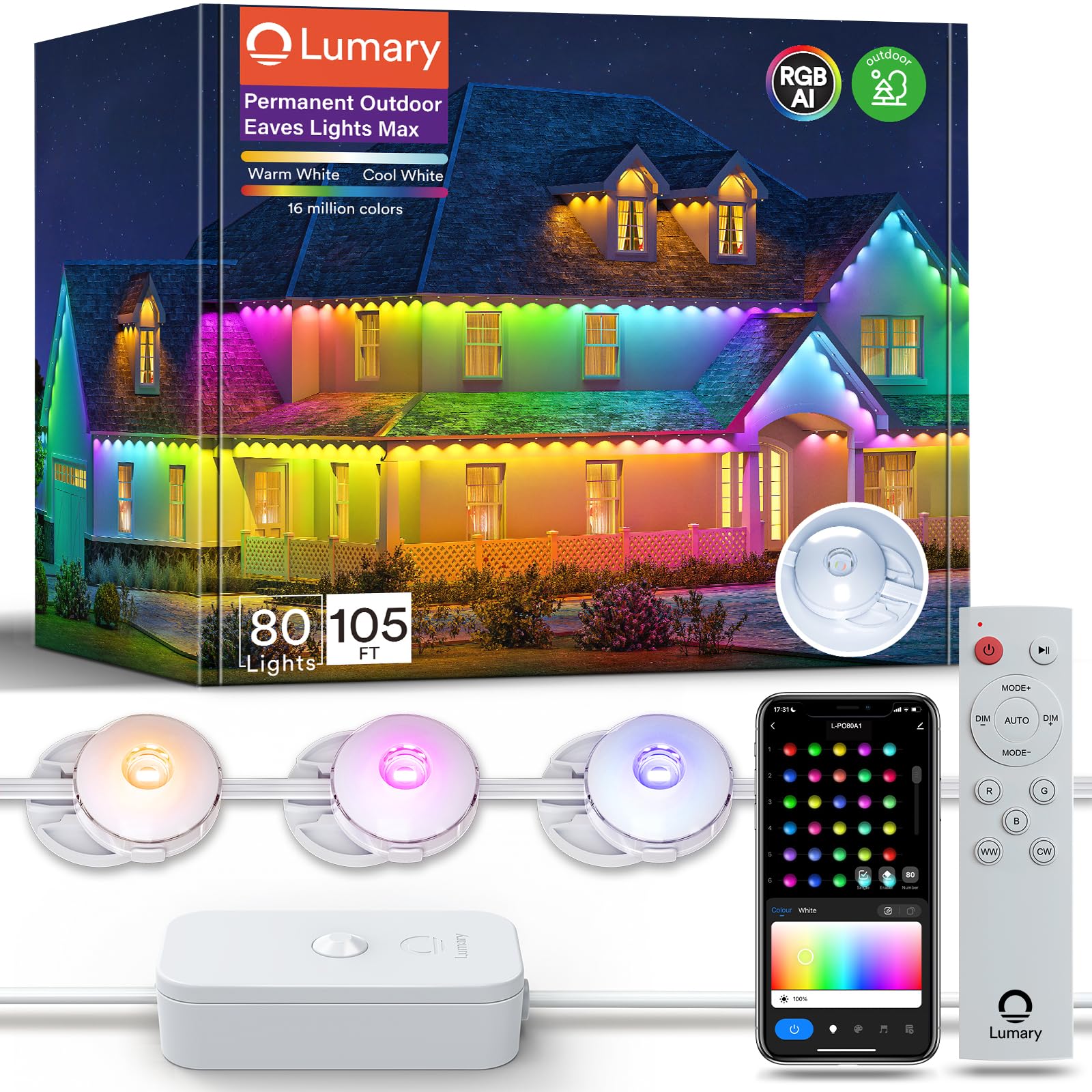 Lumary 13ft Extension String with 10 LED Eave Lights, Only Work with Max Version (L-PO40A1 / L-PO80A1), Adapter & Control Box Not Included