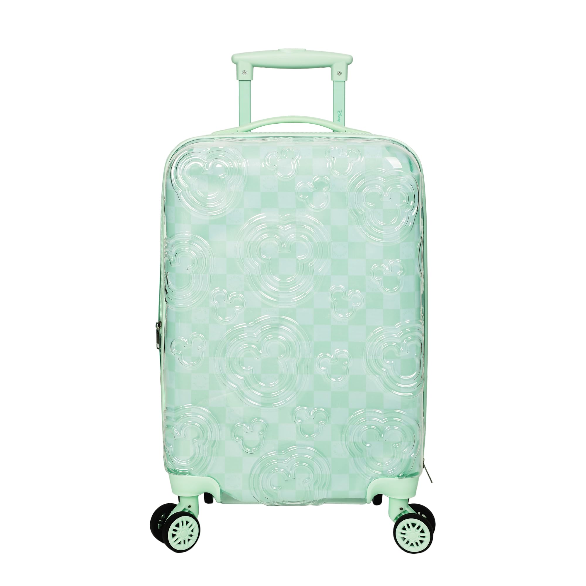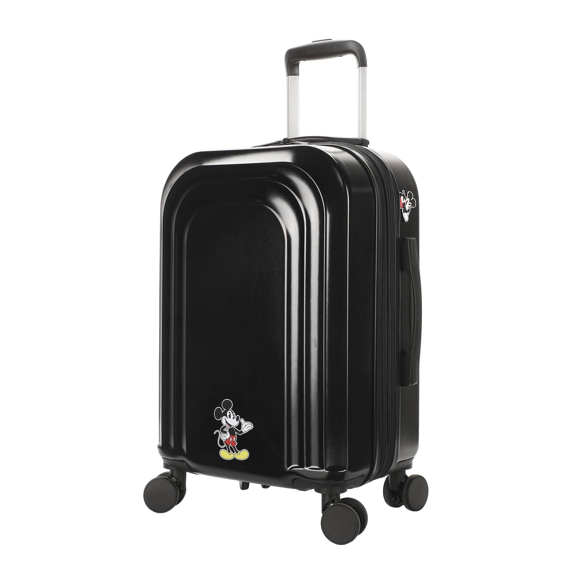 - Minnie Mouse: Travel the world with your favorite character in tow! This hard-sided luggage features a colorful all-over print of Minnie Mouse with a unique pyramid texture.