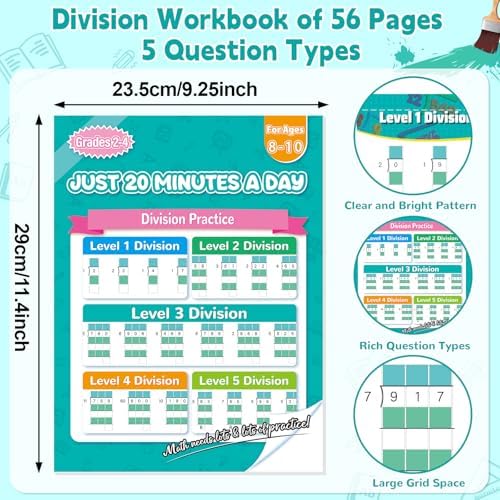 - Ideal Gift Choices: With unique colorful pattern on each page, the division workbook makes a thoughtful early learning gift for students. It’s a fun way to boost kids’ math thinking during holiday breaks like Christmas and Halloween. Eye-catching illustration helps boys and girls build positive learning habits, and develop a love for math efficiently.