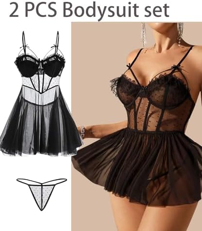 MOOLIGIRL Sexy Night Gowns Women's Lingerie Lace Trim Sleep Babydoll Chemise Nightgowns Side Split Nighty Black