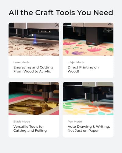- Smart Multi-Tasking for Efficient Processing: Maximize workspace efficiency with modular attachments that switch in just 3 seconds. No more juggling multiple devices—seamlessly transition from laser engraving to vinyl cutting, inkjet printing, or drawing with precision and zero downtime.