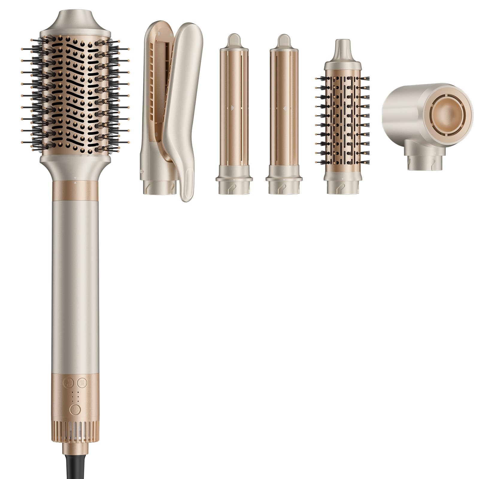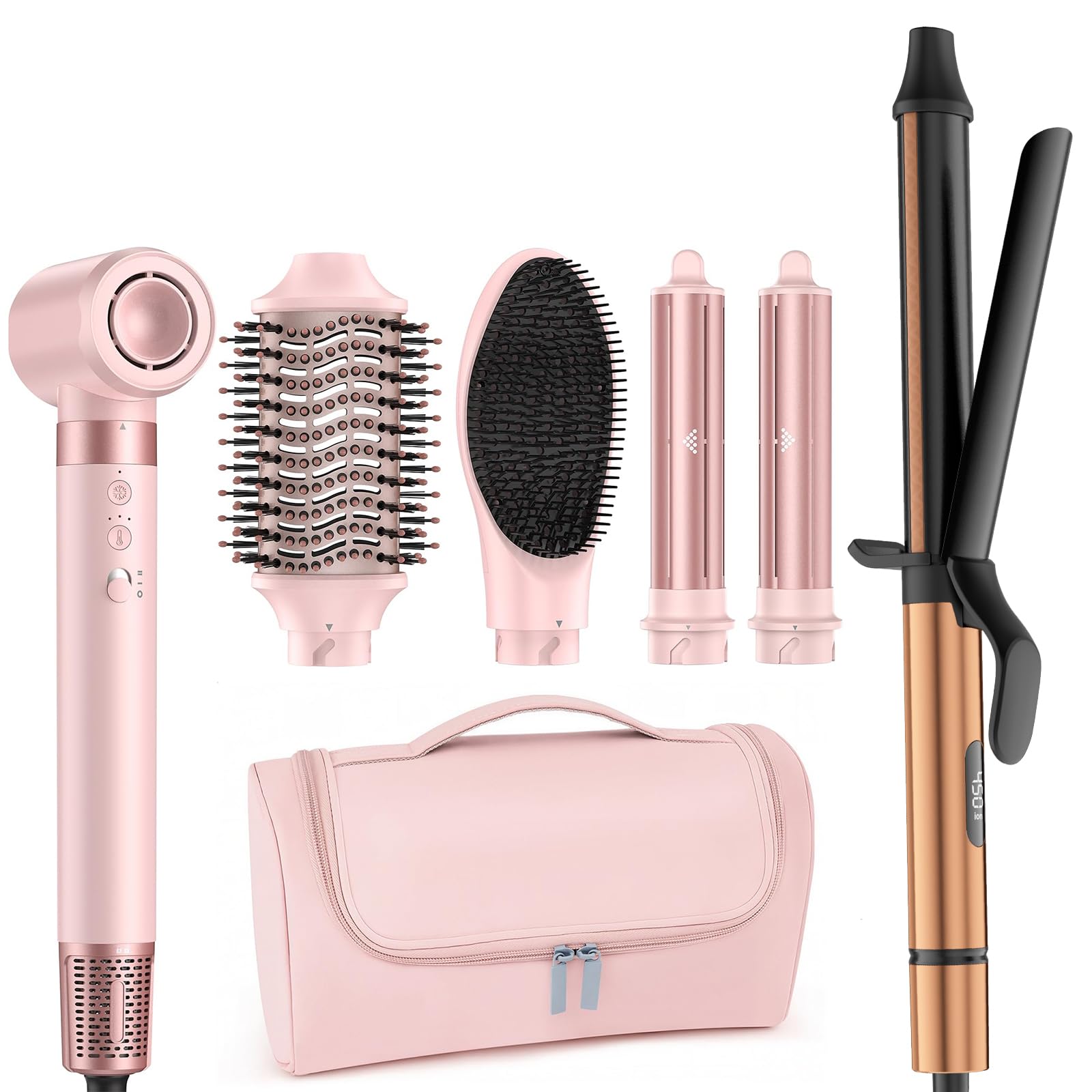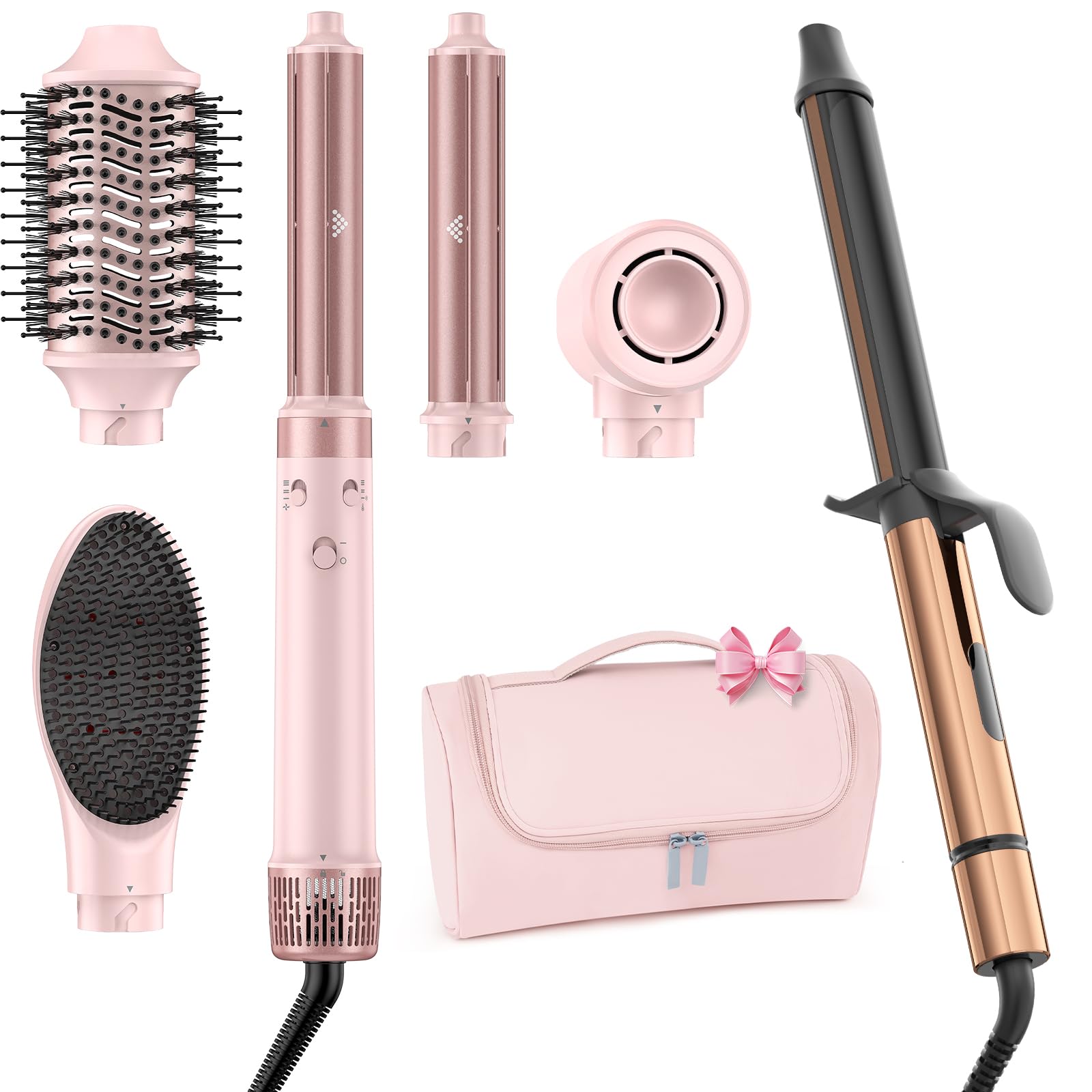 - [5-in-1 Styling Magic – Blow, Curl, Lift, Smooth, Repeat] - This 5 in 1 air wrap hair styler is your daily beauty shortcut. It includes a powerful hair dryer styler, two auto-wrap curlers, a round brush for smooth shaping, and an oval brush for volume you can’t miss. Switch heads in seconds—no salon needed.