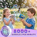 Triple The Bubble Joy: This set has 3 bubble guns in eye-catching hues. A ticket to shared fun, ideal for group playdates where kids team up, or backyard parties-everyone joins bubble-making, no more squabbles over who uses the toy Enchanting Bubbles: This bubble gun creates thousands of bubbles in 30s. Like opening a portal to a bubble kingdom during park, beach or garden outings. Watch iridescent bubbles fill the air, turning any outdoor spot into a play wonderland for kid Leak-Proof Design: Say goodbye to messy spills! Upgraded bottle + fully sealed structure ensure no-leak tech—kids can tilt, flip, or run wild, and bubble solution stays put. Saves solution and keeps little hands/clothes spotless, letting parents relax Vibrant LED Lights: Built-in LED lighting adds magic to playtime, glowing charmingly in low light—ideal for evening fun or parties. Lights up colorful bubbles, creating a magical vibe for solo play or group adventures Ideal Gift For Kids 3-12: Includes 3 bubble guns, 3 bottles of bubble solution and 5 concentrate packets for endless bubble fun. Perfect for ages 3-12, weddings, parks, backyards, and indoor/outdoor play—all-in-one kit for non-stop adventures
