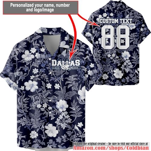 Football Floral Dallas Men Youth Women Hawaiian Shirt Short Sleeve Button Down Custom Name Number Aloha Beach Shirt