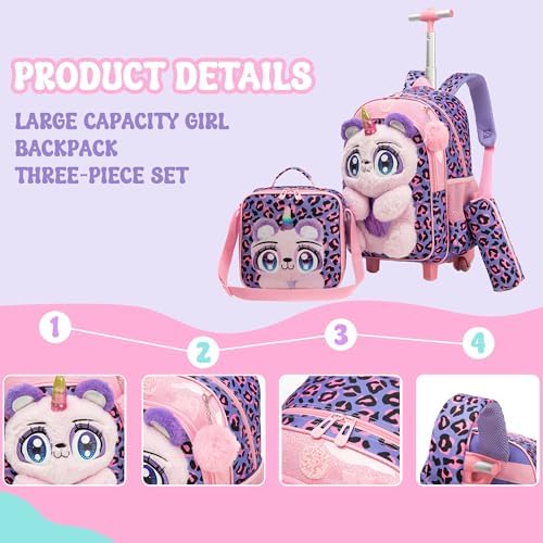 Meetbelify Rolling Backpack for Girls Backpack with Wheels for Elementary Student Kids School Bag with Lunch Box Pencil Case for Girls Ages 6-8 Years Old