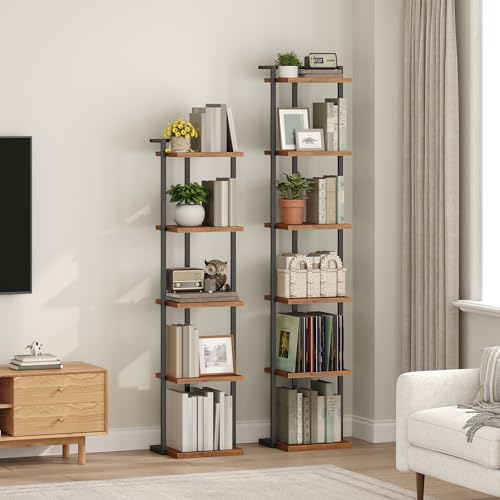 Bookshelf, 6-Tier Bookcase, Vertical Tall Narrow Book Shelf for Small Space, Open Storage Display Shelf with Stable Base & Anti-Tip Kits, for Living Room, Study, Rustic Brown BKHR11601