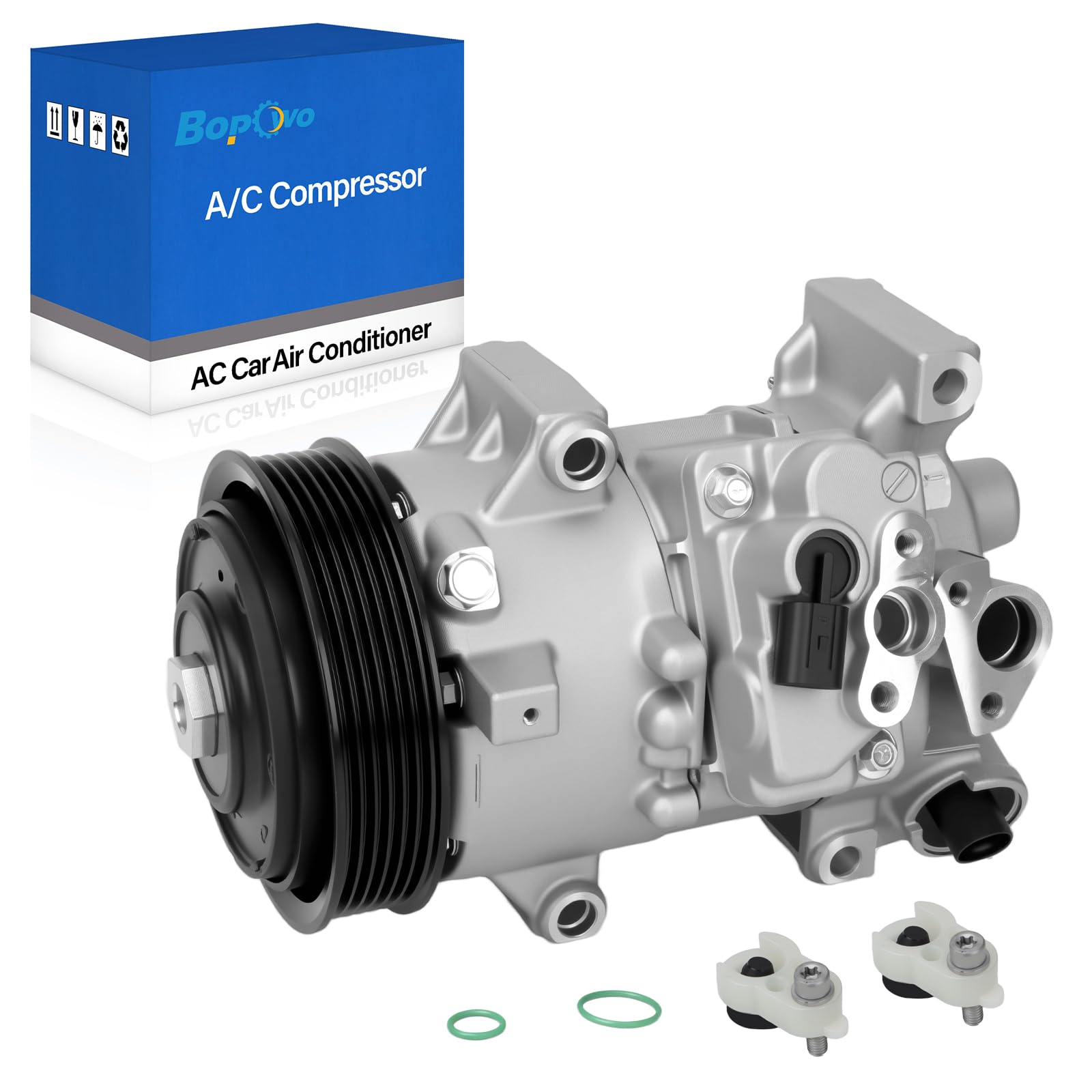 - High Performance A/C Compressor — The air conditioning compressor is manufactured using high quality aluminum and reinforced steel components to ensure superior strength, corrosion resistance and long lasting durability. This air conditioning compressor can withstand high pressure conditions and extreme temperatures, providing stable, efficient cooling operation over a longer service life