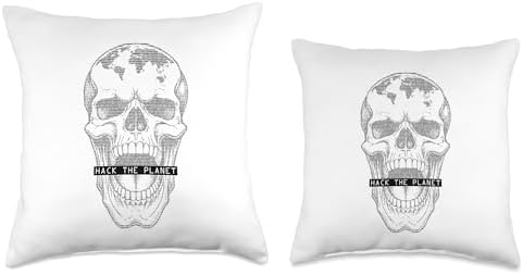 Hack The Planet Earth Skull Binary Computer Code Hacker Throw Pillow