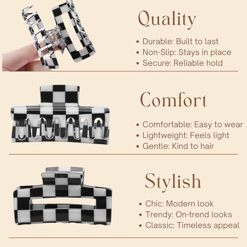 - ✅ 4 Trendy Checkered Colors: This set includes black & white, pastel pink, mint green, and sky blue checkered clips—playful yet stylish. A fun and aesthetic upgrade to your hair accessories collection.