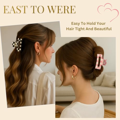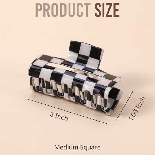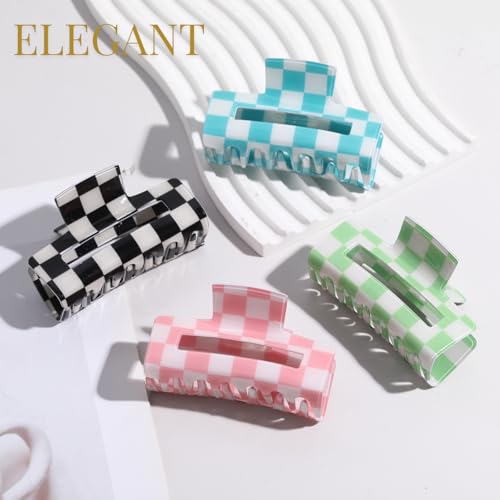 LuSeren 4 Pack 3 Inch colorful Hair Claw Clips for Women, Medium Rectangle Acetate Jaw Clips in Black, Pink,Green, Blue, Stylish Checkered Hair Accessories for Girls