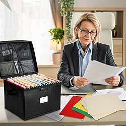 Product Includes: A fireproof Lock box with lid. Stay organized for your office files, It allows you to easily organize your whole life in one place End of Life Document Organizer: Organizing and storing important life documents, such as wills and trusts, health care instructions, investments, marriage documents, keys, bills and bank/credit cards, our lock box is a good tool to keep you organized Large Capacity: The box size is 15.7" x 12.6" x 11.8", Suit for Hanging Letter/Legal Folder. Used for store important file, letters, receipts, cards, passports Fireproof Document Safe Box: Made of silicone coated fiberglass that can withstand temperatures up to 2000°F. File box is fireproof&Water-resistant, It will give enough time to save your valuables from fire, keep documents organized and safe Humanized Design: The fireproof file box can be folded, convenient to store at home office. High-quality password lock design increases storage security, It's time to get your things organized
