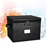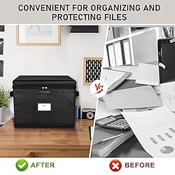 - Product Includes: A fireproof Lock box with lid: Made of silicone coated fiberglass that can withstand temperatures up to 2000°F. File box is fireproof&Water-resistant, It will give enough time to save your valuables from fire, keep home and office documents organized and safe. Large Capacity: The lock box size is 15.7" x 12.6" x 11.8", Suit for Hanging Letter/Legal Folder. Used for store important file, letters, receipts, cards, passports, etc. It's time to get your things organized. End of Life Document Organizer: Organizing and storing important life documents, such as wills and trusts, health care instructions, investments, marriage documents, keys, bills and bank/credit cards, our lock box is a good tool to keep you organized. Humanized Design: The fireproof file box can be folded, convenient to store at home and office. High-quality password lock design increases estate and personal documents, bank, and property records secure organized.