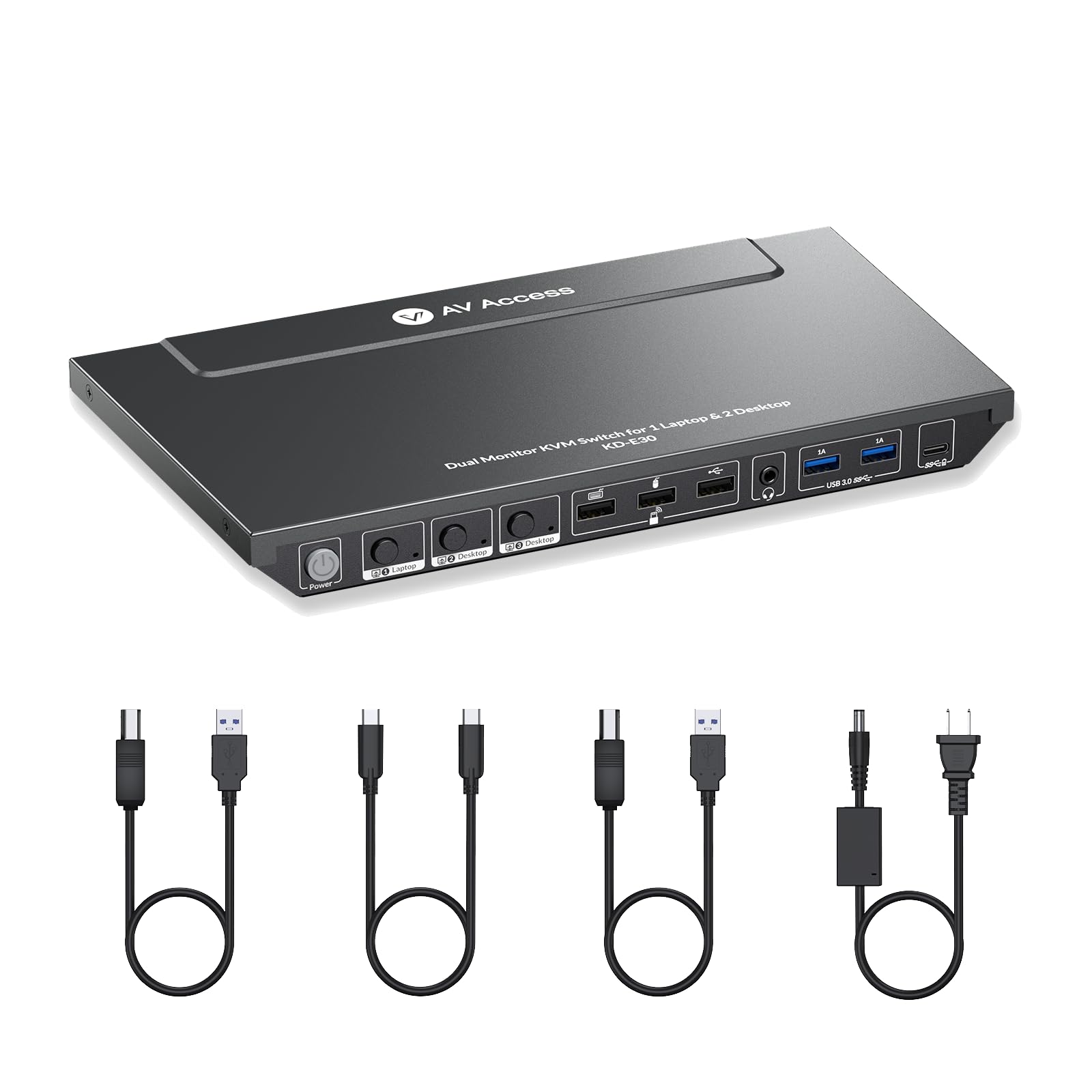 AV Access 8K KVM Switch 2 Monitors 2 Computers for Laptop & Desktop, 100W USB-C Charge for Laptop, Ethernet, Docking Station Dual Monitor 8K@60Hz/4K@165Hz, 4xUSB 3.2, Audio, SD, Wired Remote Control