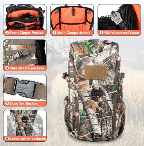 - 【Durability & Concealment】Crafted from high-quality, waterproof, silent double-layered fabric, the hunting backpack ensures quick and silent access to gear. Precision stitching guarantees durability and lightness. The NEXT CAMO G2 camouflage pattern offers maximum concealment during hunting, ensuring you blend seamlessly into your environment.