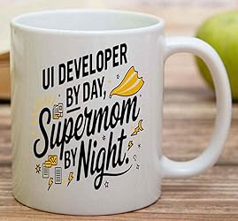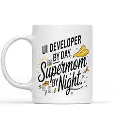 Funny Gift Idea Funny Gift for Ui Developer Mom,ui Developer by Day by Night, Present for Mom, Coworkers, Friends 11 Oz White Ceramic Coffee Mug