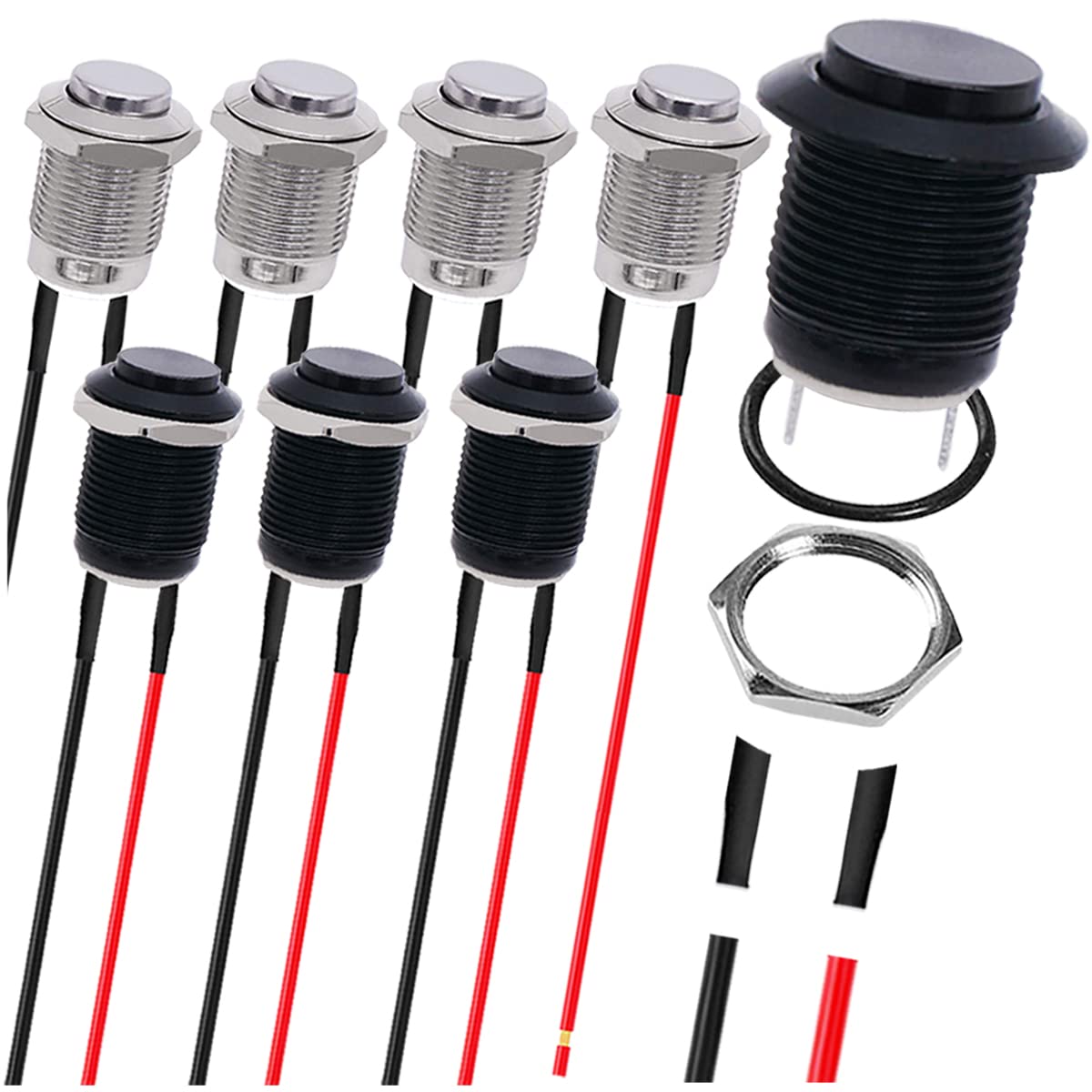 8PCS Toggle Switch Cover 12 mm EDPM Rubber Universal Knob Hat Boot Metal Threaded Hex Cover Cap Waterproof Moisture Dust Dirt Resistant Black Green Red