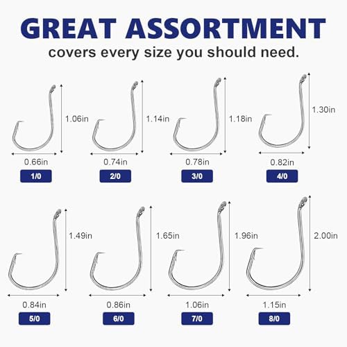 - 【Premium Quality】Made of premium high carbon steel, our saltwater fishing hooks with double strength and corrosion resistance will last a long time on sharpness and help you catch a lot of fish. Stunning catfish hooks bring you a successful fishing day