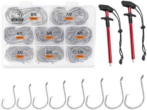 - 【Unique Design】Extremely sharp, offset Ponit, special barb hooks is designed to ensure that the point of fishing hooks saltwater rolls in the corner of the fish's mouth, made for less physical damage to the fish. Easy to remove. Great variety covers every size you should need