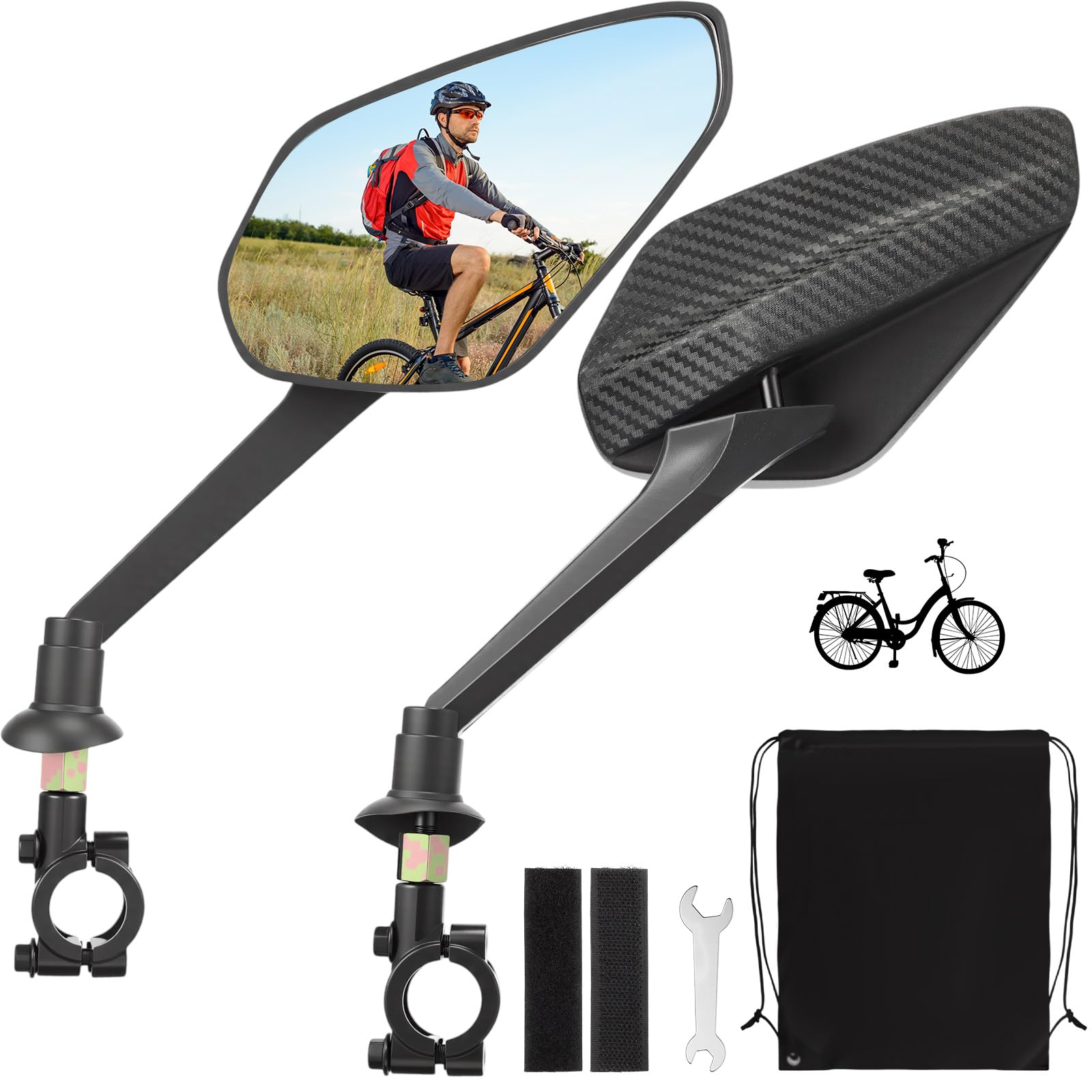 - For Your Riding Safety: our bicycle rearview mirror handlebar bracket set comes with the accessories you need for a hassle-free installation; It includes 1 pair of bicycle rearview mirrors, fixing bases with mounting holes, a handy wrench, and all required accessories; Designed to fit the left, right, or top of the handlebar, it suits a wide variety of bicycles including mountain bikes, road bikes, and electric scooters