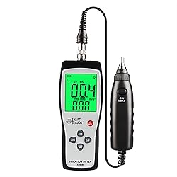 - Feature: 1. LCD display measurement result and conditions directly 2. Measure acceleration(m/s2 peak), velocity ( mm/s ms(, and displacement (mm p-p) 3. Selective vibration characteristic 3. Uses hi-sense of vibration sensor, measuring accurately 4. Equipped two probes ( S and L) to adapt the different measurement requirement 5. Provides a magnetic probe to fit the condition uneasy hold on by hand 6. Low battery indication 7. Auto turn off button 8. LCD back light function 9. Maximum value hold function 10. Temperature unit °C / °F selection Pakcage List: Split Type Vibration Meter AS63B Kit X 1