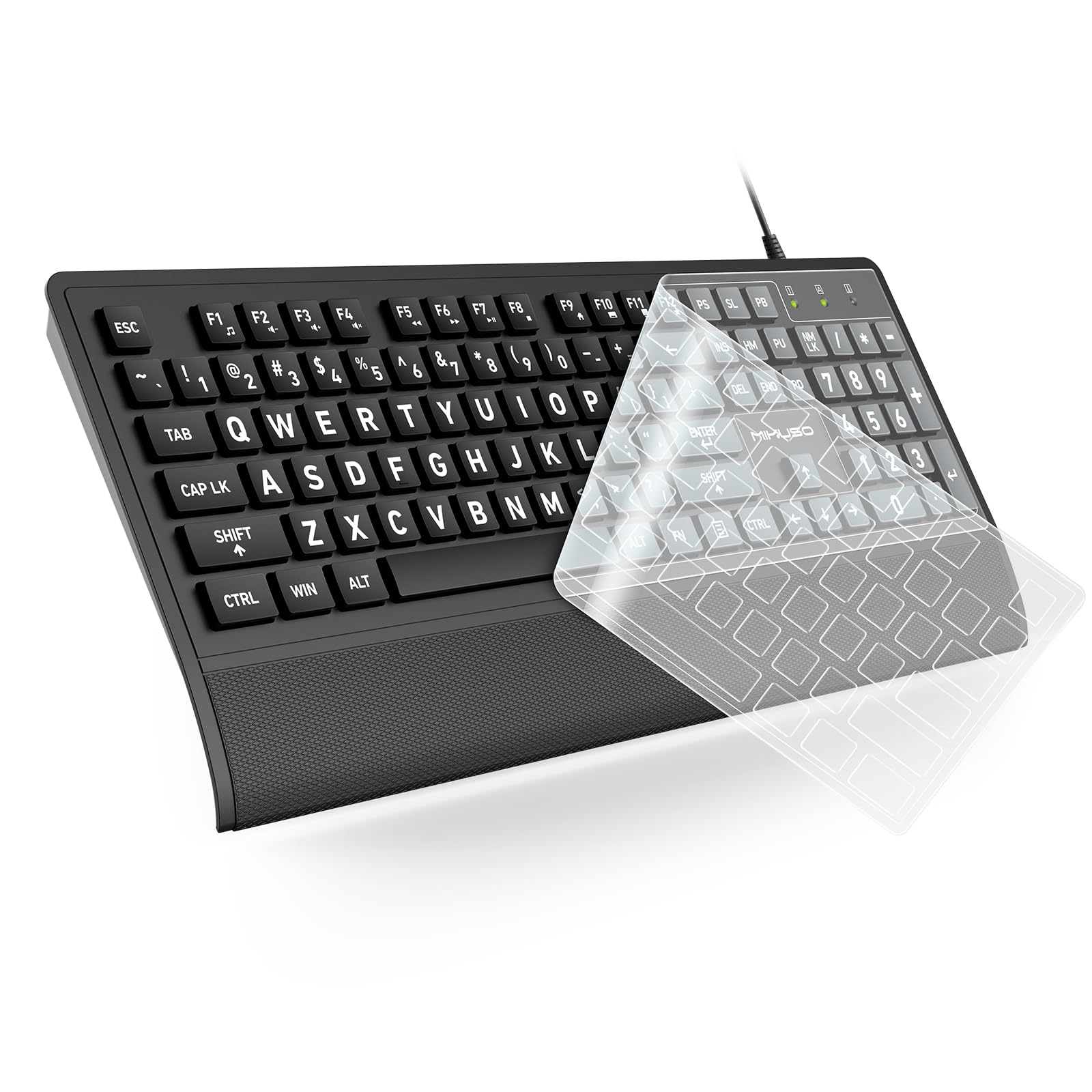- Light up Large key Keyboard: Large print backlit Keyboard features an oversized font design, clear and easy to find, 4X larger than standard keyboard fonts,it can really help those who have trouble seeing keyboards. reduce typing errors, ideal for seniors, students, office workers, and those with visual impairments