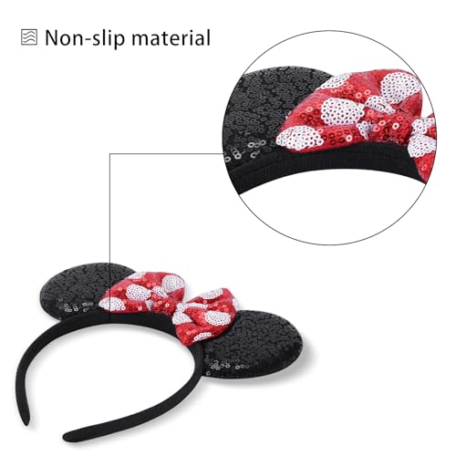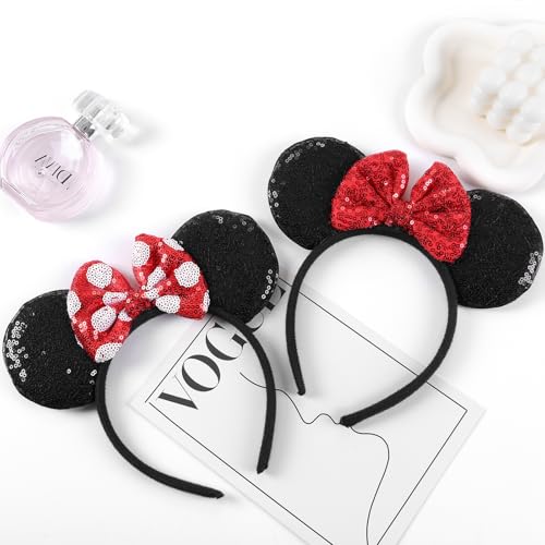 2 Pcs Red Mouse Ears Sequin Headbands,Shiny Bows Headbands, A Perfect Addition to Your Trip Essentials Accessories for Women Grils Princess Decoration Costume Cosplay