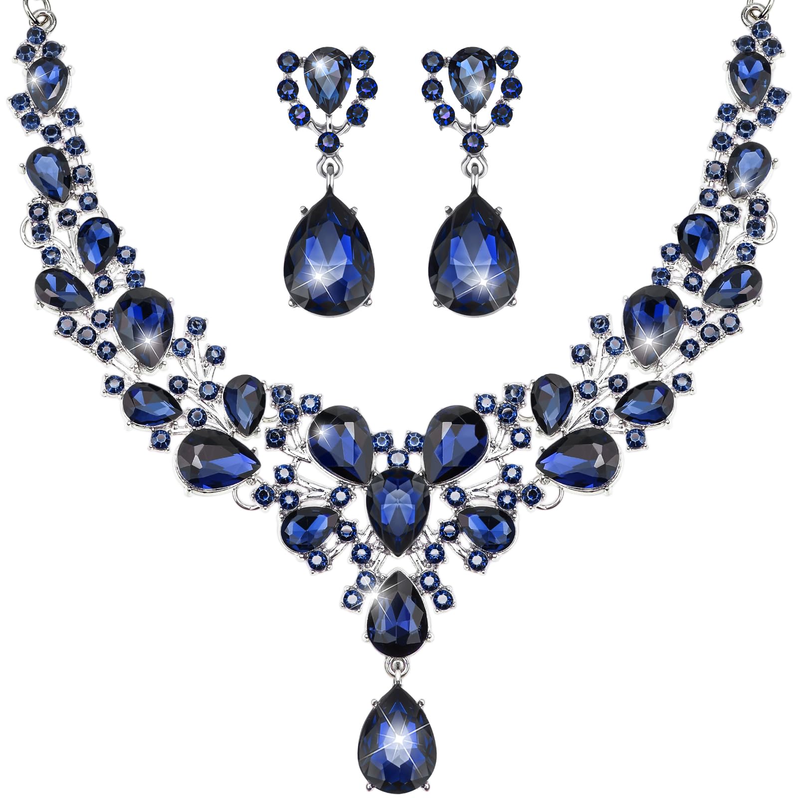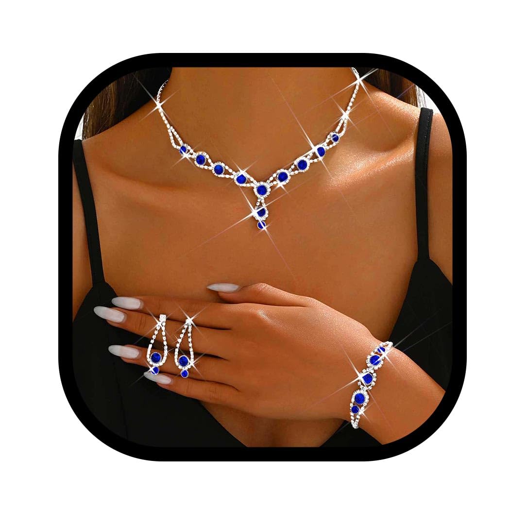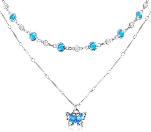 Blue Butterfly Necklace for Women Layered Necklace with Beaded Chain Silver Necklace with Dainty Pendant Jewelry Sets for Trendy Fashion Accessories Gifts for Birthday Mothers Day