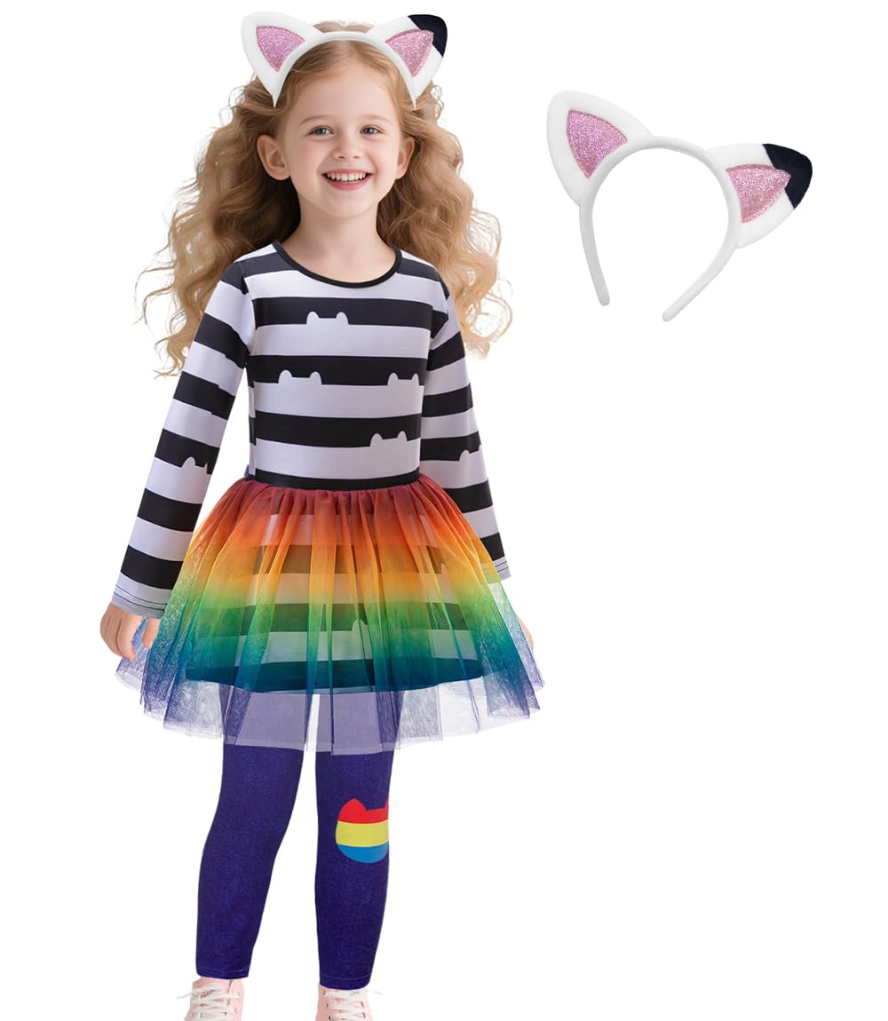 LZH Witch Costume for Girls Halloween Costume for Kids Black Halloween Dress with wig and Glasses for Cosplay Outfit 4-12Y