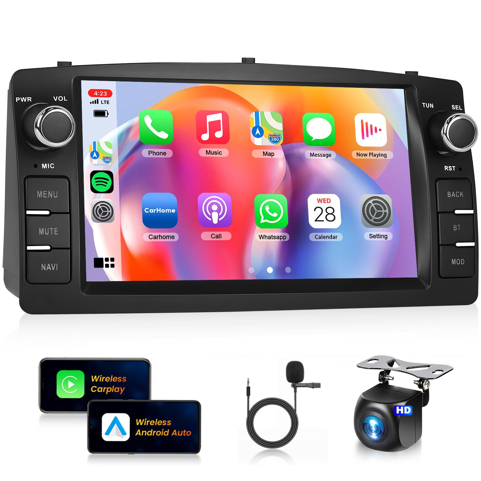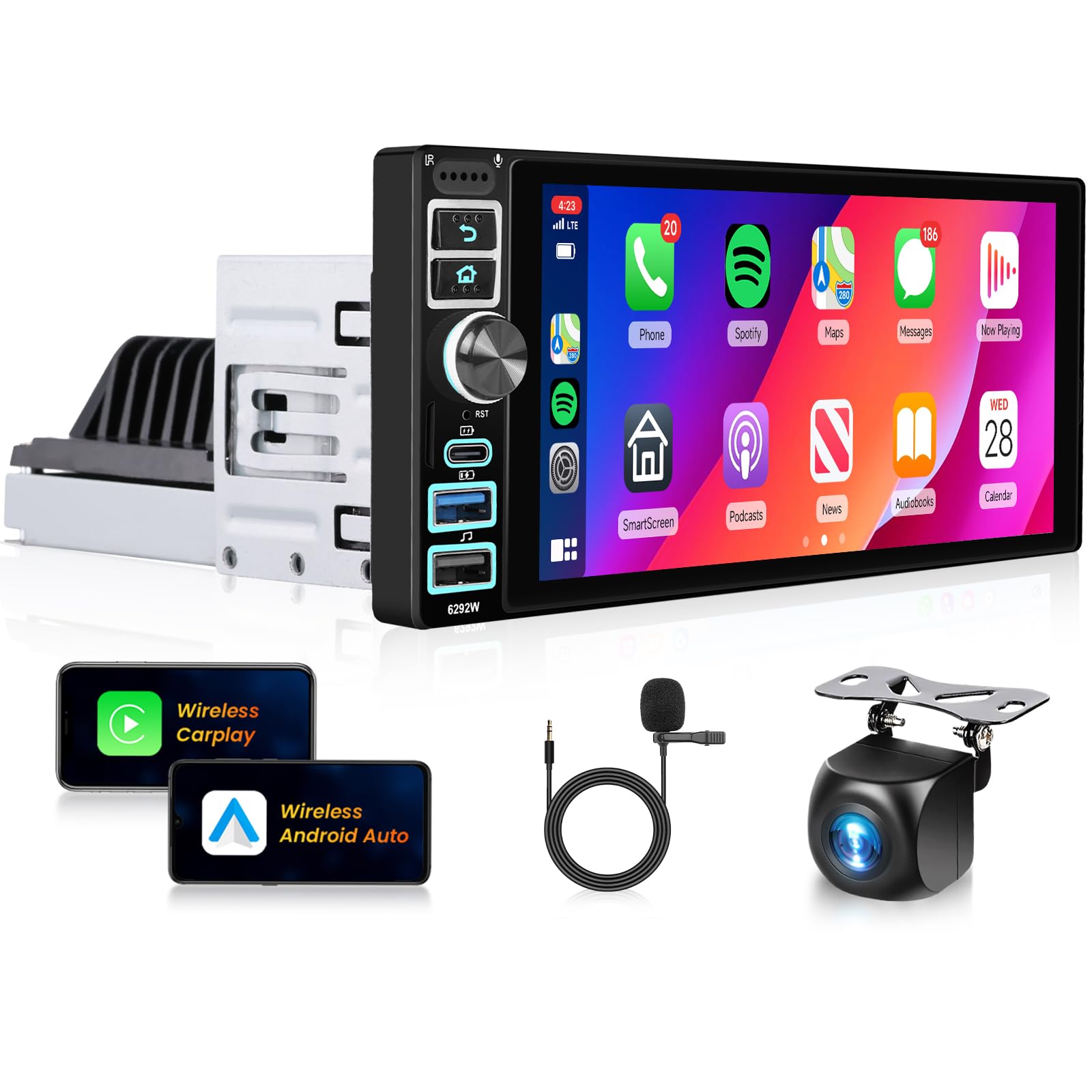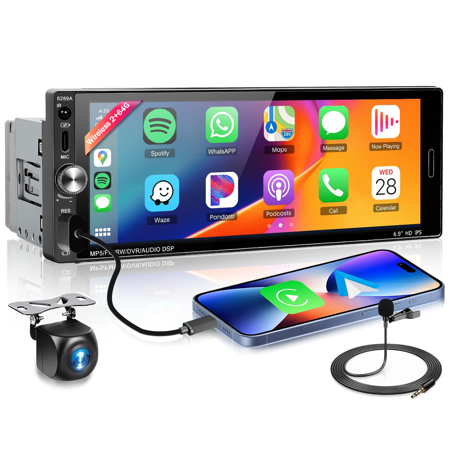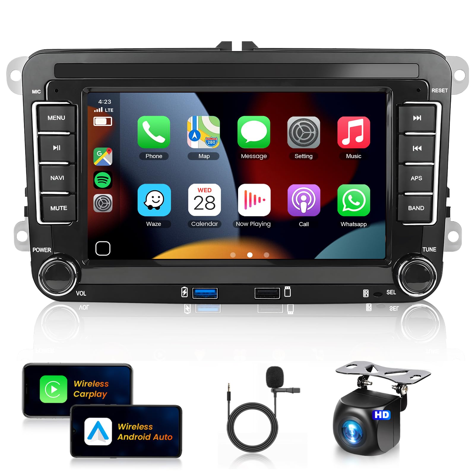 - Wired/Wireless CarPlay,Android Auto with Voice Control: The wireless CarPlay and Android Auto features of the double din car radio system support wired or wireless connectivity. With Siri or Go-ogle Assistant voice control, users can conveniently make calls, access in-car navigation and control music playback