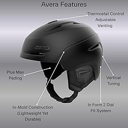 HARDSHELL WITH I.M. HARDBODY LOWER WRAP - The two-piece shell combines a tough outer hard shell with a polycarbonate lower shell permanently fused to the liner for durability without excess weight. IN FORM FIT SYSTEM - The In Form Fit System makes it easy to dial in a custom fit in seconds - even with gloves on. An ergo-friendly dial at the base of the helmet provides up to 6cm of adjustment and enhanced stability. THERMOSTAT CONTROL - Thermostat Control Adjustable Venting allows you to custom-tune airflow instantly with a simple, low profile control button on the outside of the helmet. No other system is faster or easier to adjust, and nothing is more effective at keeping you comfortable. SEAMLESS COMPATIBILITY - For optimal performance of both helmets and goggles, Giro products are designed to work together, ensuring a seamless interface between helmet and goggle for an exceptional fit and dependable, worry-free function. FEATURES - Women's specific styling and details, Vertical Tuning, Seamless Compatibility with Giro Ski and Snowboard Goggles